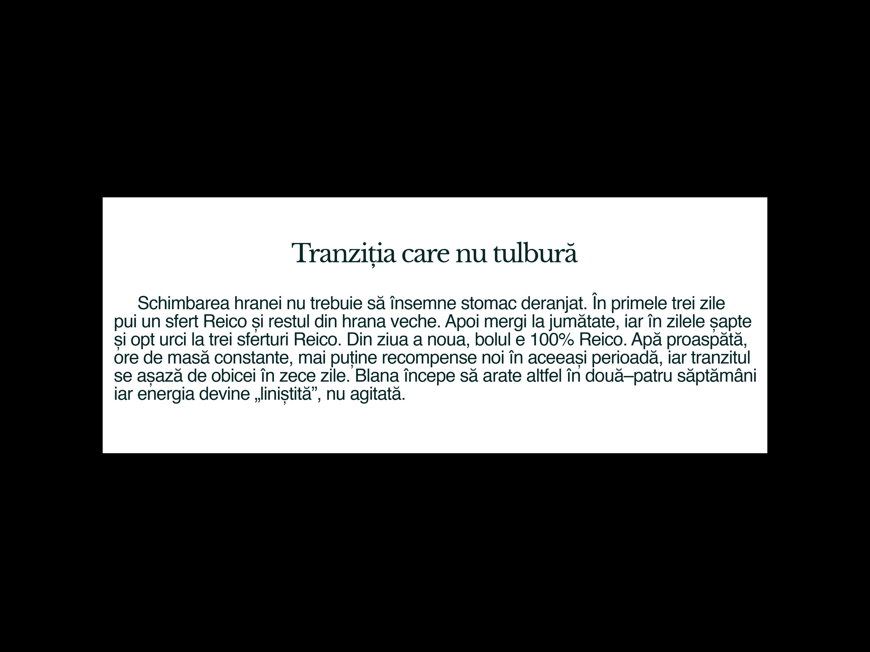 Când iubești un animal, nu cumperi „hrană”. Alegi liniște. Alegi să știi ce pui în bol și de ce. De aceea vorbim despre Reico: rețete gândite să readucă echilibrul mineral în organism, cu ingrediente curate și cu promisiunea simplă că binele zilnic se construiește cu pași mici și corecți. Nu vindem miracole, ci grijă constantă.